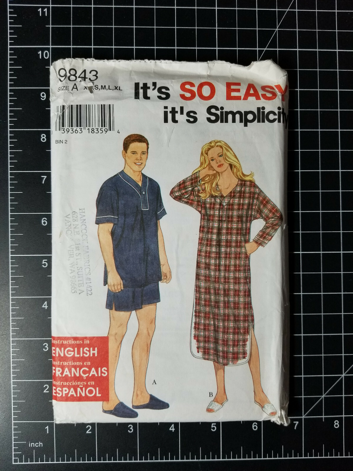 Simplicity 9843 Pattern Pajamas Nightgown Shirt Mens Misses Xs Xl Ff Uc Ebay