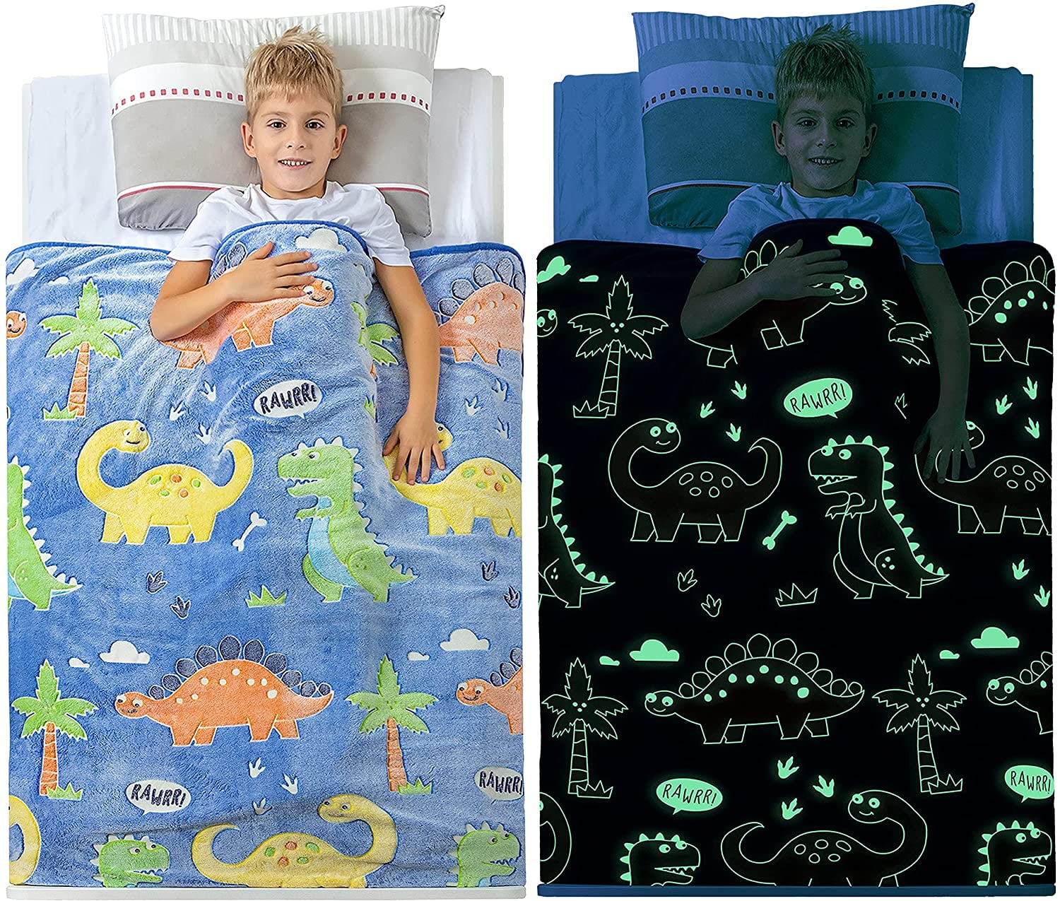 Glow In The Dark Dinosaur Blanket For Boys Soft Plush Blue Fleece Throw Blanket Great Dinosaur Gifts For Kids Grandkids Baby Toddler Birthday Christmas 6 Hour Glow 50 X60 Walmart Com